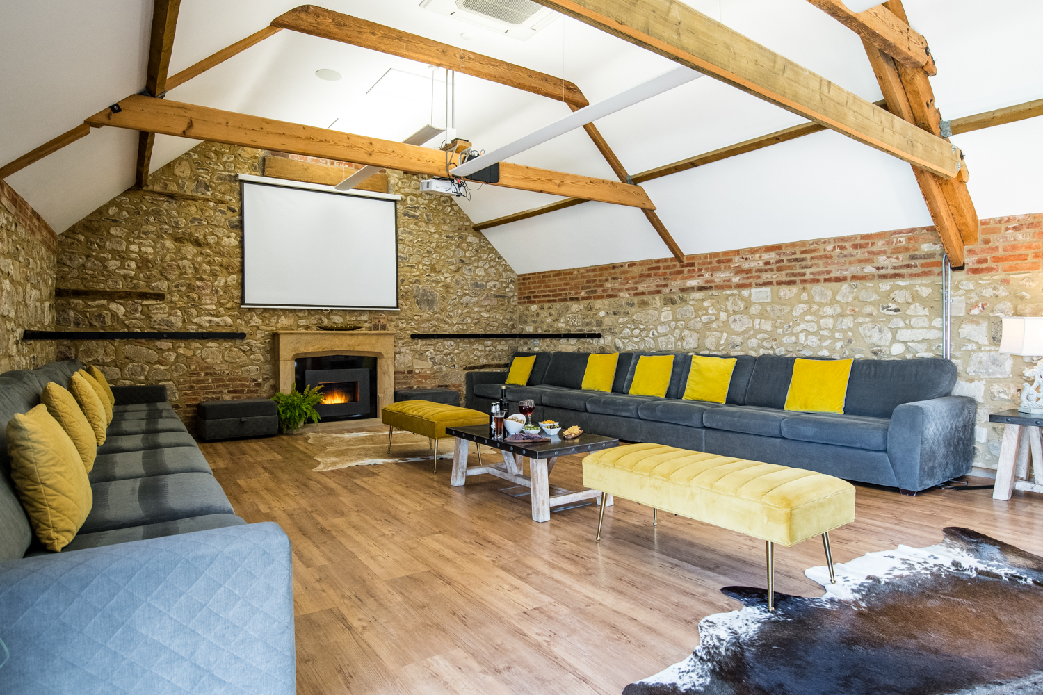 Beaverbrook 20 - Large Cinema room, with wraparound seating, providing clear view of the large projector. Perfect set-up for cosy movie nights with your large group. -