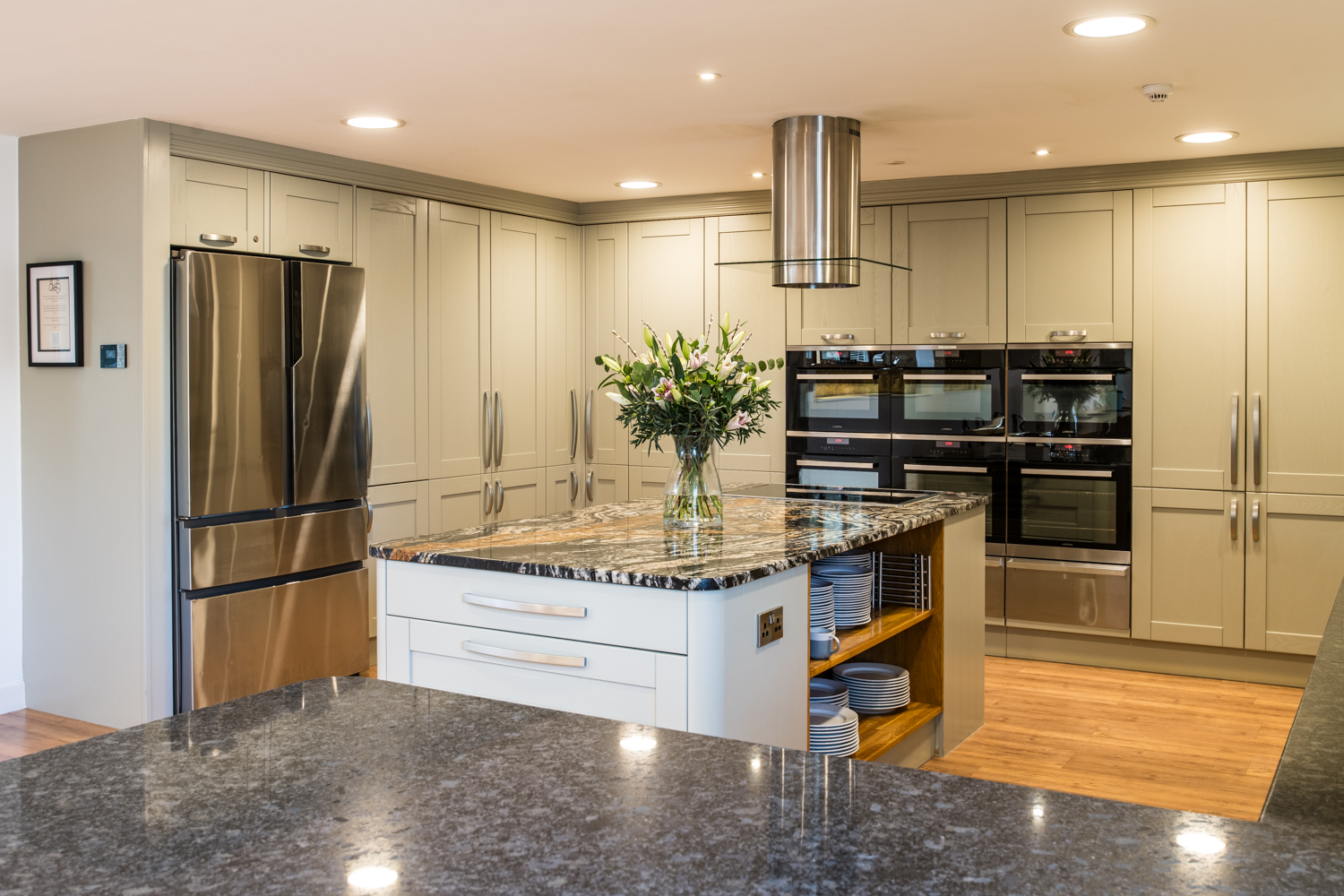 Beaverbrook 20- Layout of the kitchen, with a bank of 6 ovens, and 3 warming drawers below. -