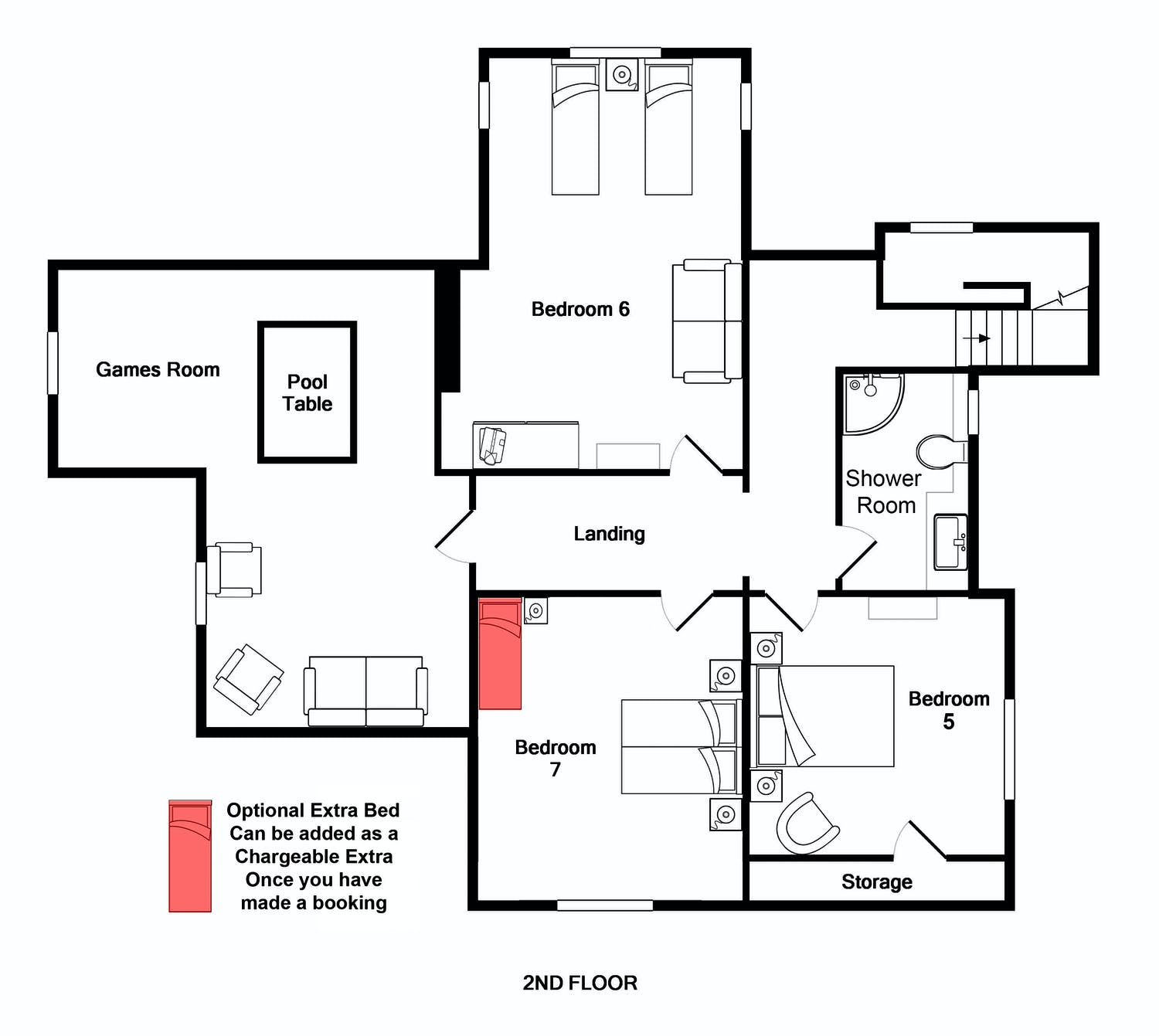 Bedroom 5 is on the second floor
