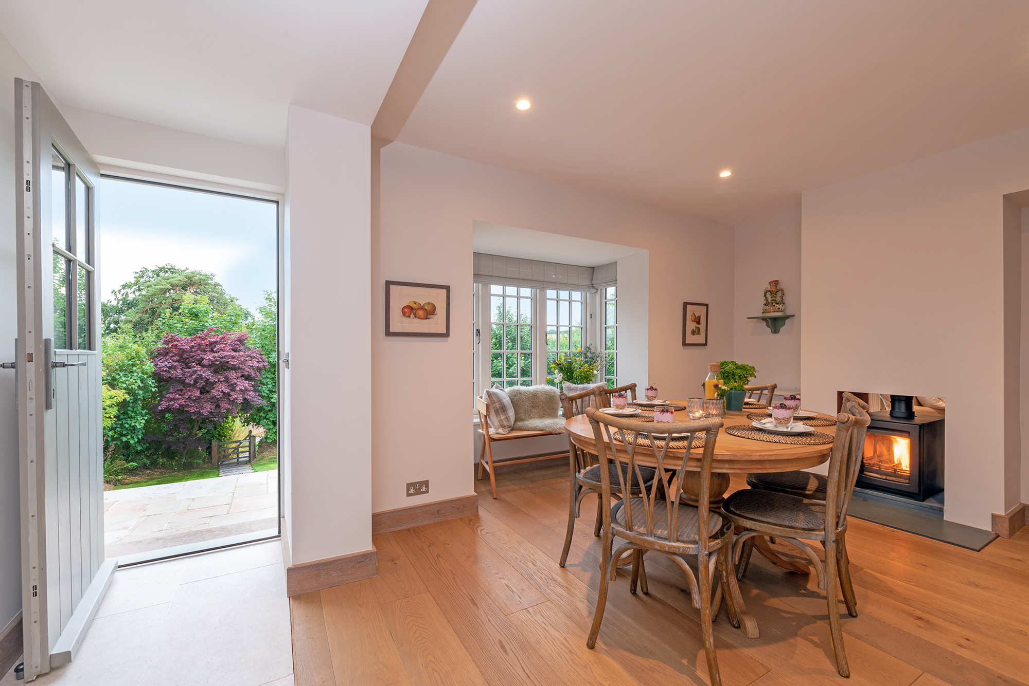 Perys Hill - The Cottage: Step into the dining room, with a double sided wood-burner for when it's cold out -