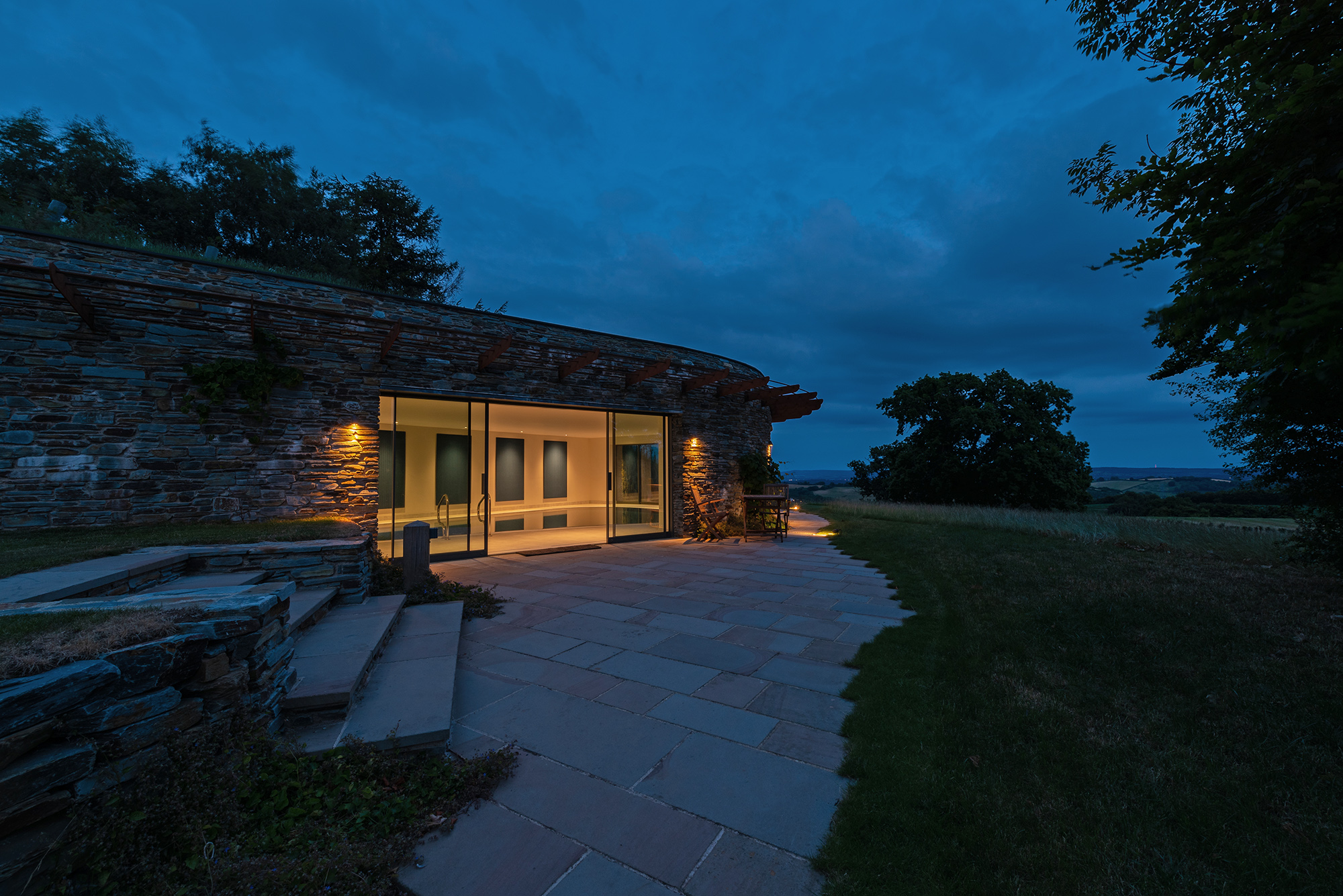 Perys Hill - The pool house is set into the hillside and has a living roof -