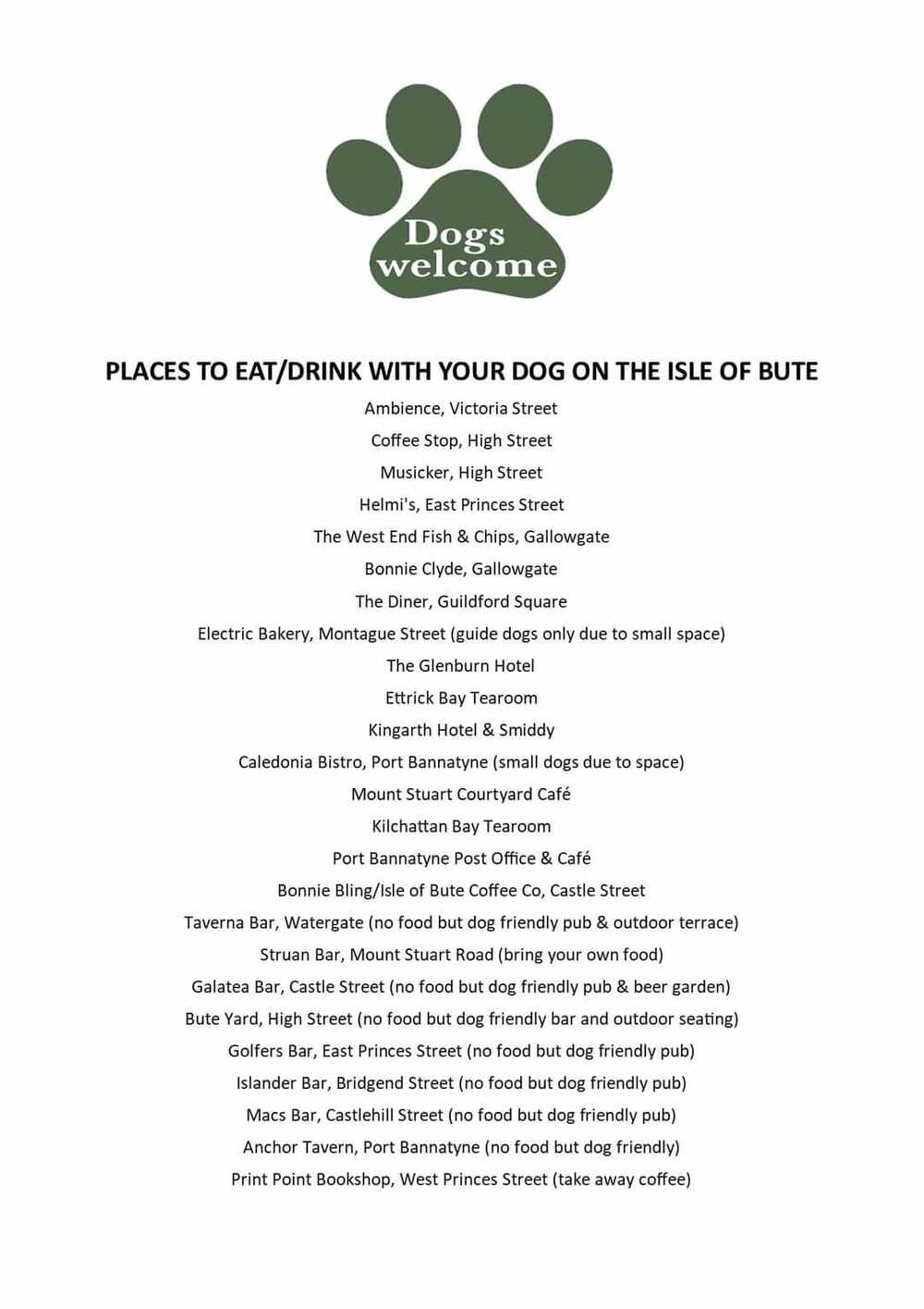 Also, most cafes and pubs on the island are dog friendly - see the attached list for details.